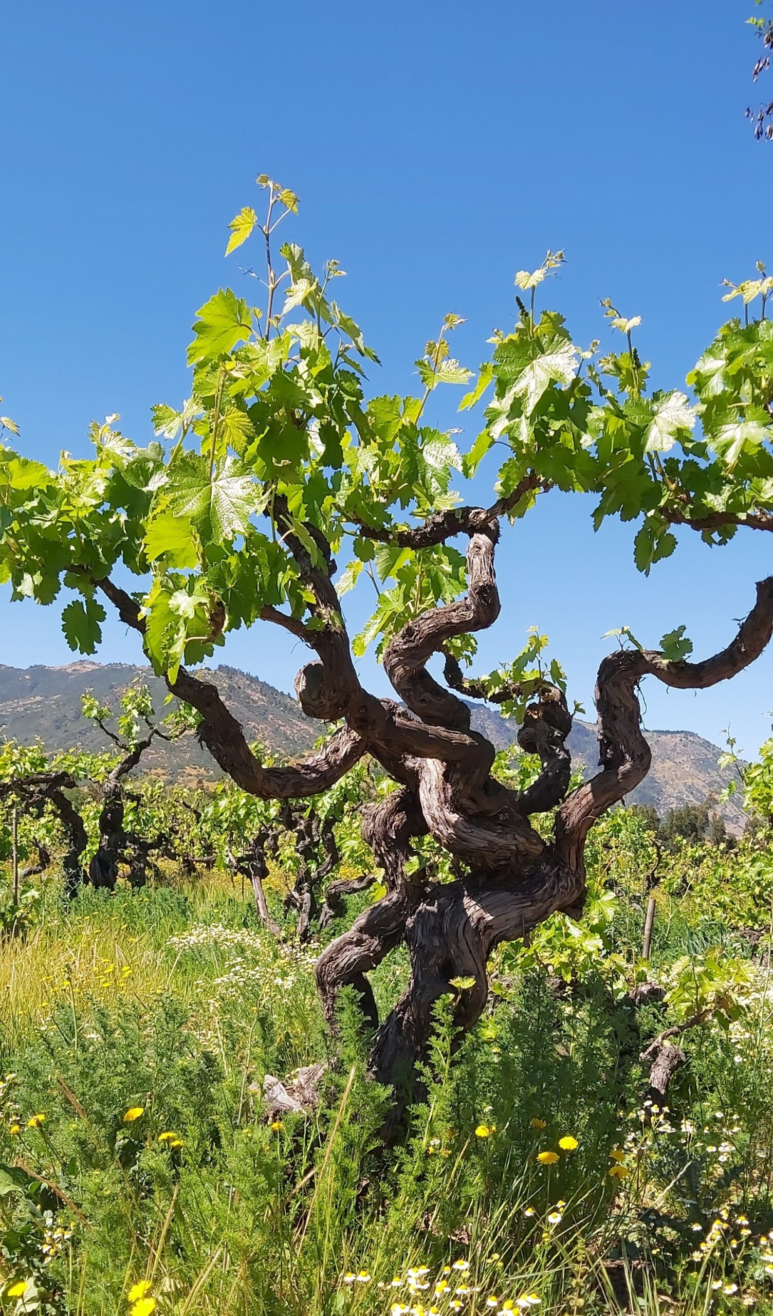 En la foto ves una parra de País centenario, con manejo orgánico, que crece en la zona del secano de Pumanque. Probar sus vinos elaborados por La Despensa es una obligación.